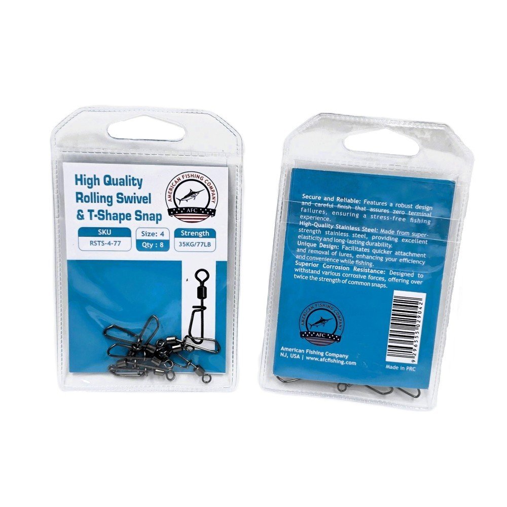The AFC Rolling Swivel with T-Shape Snap is suitable for a wide range of fishing applications, from light tackle setups to heavy predator fishing.